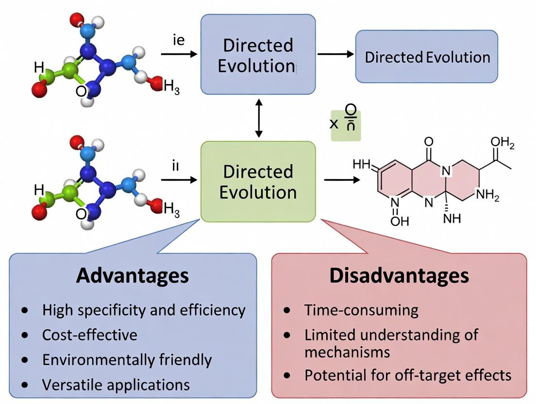 Directed evolution stands as an indispensable, yet imperfect, pillar of modern protein engineering and drug discovery. Its unparalleled ability to navigate complex sequence-function landscapes offers distinct advantages in developing novel biologics, but is counterbalanced by challenges in library design, selection, and functional prediction. The future lies not in choosing between directed evolution and rational design, but in their strategic integration. The convergence of ultra-high-throughput screening, next-generation sequencing, and machine learning is creating a new paradigm of 'smart' directed evolution. For biomedical researchers, mastering both the advantages and disadvantages of this technique is crucial for accelerating the development of next-generation therapeutics, diagnostics, and biocatalysts, ultimately bridging the gap between laboratory evolution and clinical impact.