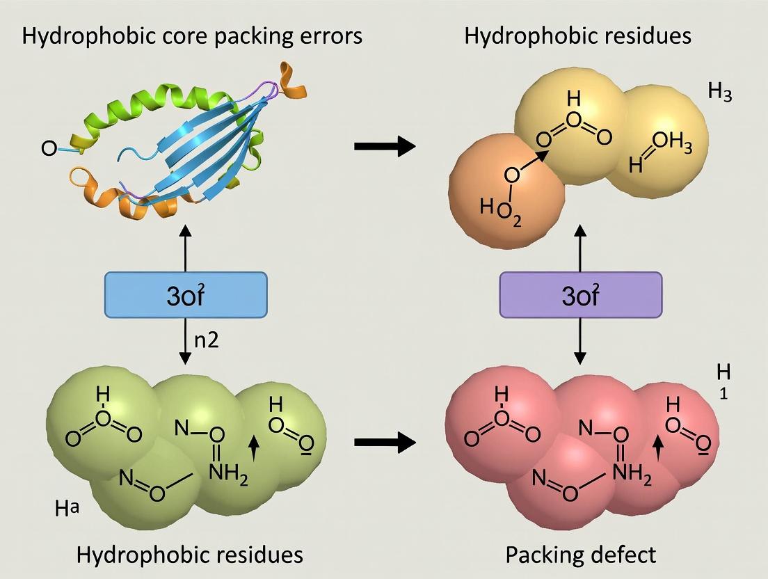 This article provides a systematic guide for researchers and drug development professionals on addressing hydrophobic core packing errors in computational protein design and engineering.