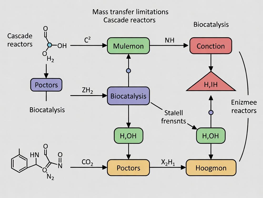 Q1: Why is the overall yield of my multi-enzyme cascade reaction significantly lower than the product of the individual yields when reactions are run separately? A: This is a classic indicator of mass transfer limitation, often due to substrate channeling failure or localized pH/cofactor depletion. When enzymes are co-localized without proper spatial organization, intermediates diffuse into the bulk solution instead of being efficiently transferred to the next enzyme. Implement immobilized enzyme systems or use scaffold proteins to create synthetic metabolons. Monitor real-time pH gradients with microsensors.